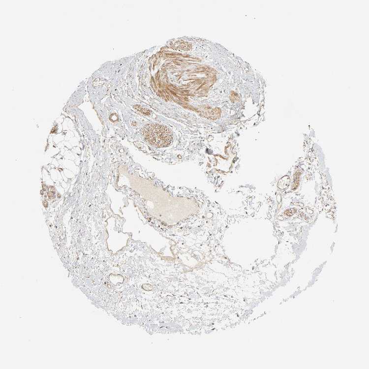 Antibody staining in the annotated cell types in the current human tissue is reported as not detected, low, medium, or high, based on conventional immunohistochemistry profiling in selected tissues. This score is based on the combination of the staining intensity and fraction of stained cells.