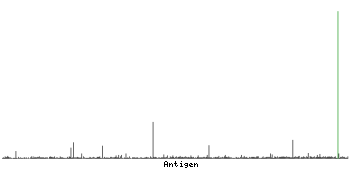 At the top of the view, the position of the antigen (identified by the corresponding HPA identifier) is shown as a green bar. A yellow triangle on the bar indicates a <100% sequence identity to the protein target.