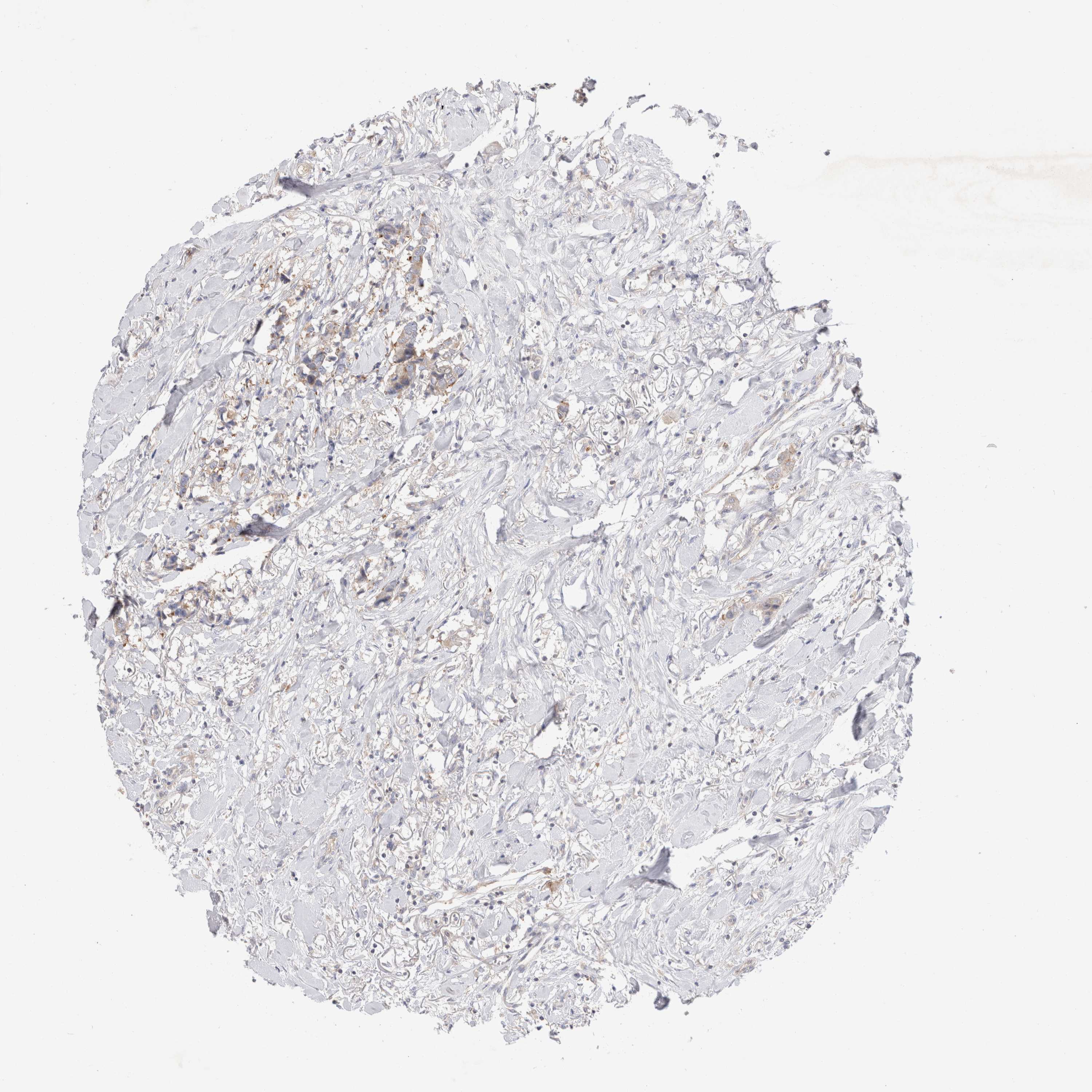 Antibody staining in the annotated cell types in the current human tissue is reported as not detected, low, medium, or high, based on conventional immunohistochemistry profiling in selected tissues. This score is based on the combination of the staining intensity and fraction of stained cells.