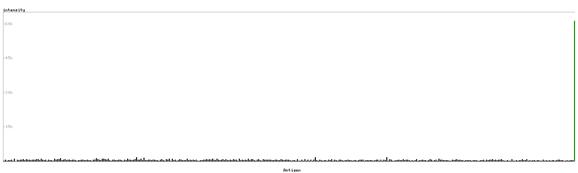 The curve in blue displays the predicted antigenicity i.e. the tendency for different regions of the protein to generate an immune response, with peak regions being predicted to be more antigenic.The curve shows average values based on a sliding window approach using an in-house propensity scale. (read more).