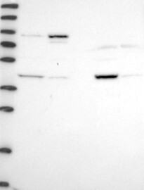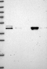 A Western blot analysis is performed on a panel of human tissues and cell lines to evaluate antibody specificity. For antibodies with unreliable result a revalidation using an over-expression lysate is performed.