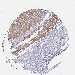 Antibody staining in the annotated cell types in the current human tissue is reported as not detected, low, medium, or high, based on conventional immunohistochemistry profiling in selected tissues. This score is based on the combination of the staining intensity and fraction of stained cells.