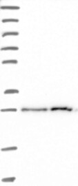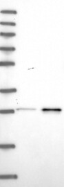 A Western blot analysis is performed on a panel of human tissues and cell lines to evaluate antibody specificity. For antibodies with unreliable result a revalidation using an over-expression lysate is performed.