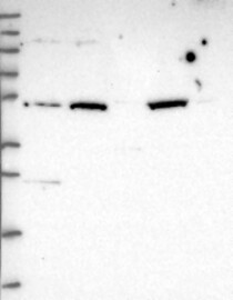 A Western blot analysis is performed on a panel of human tissues and cell lines to evaluate antibody specificity. For antibodies with unreliable result a revalidation using an over-expression lysate is performed.