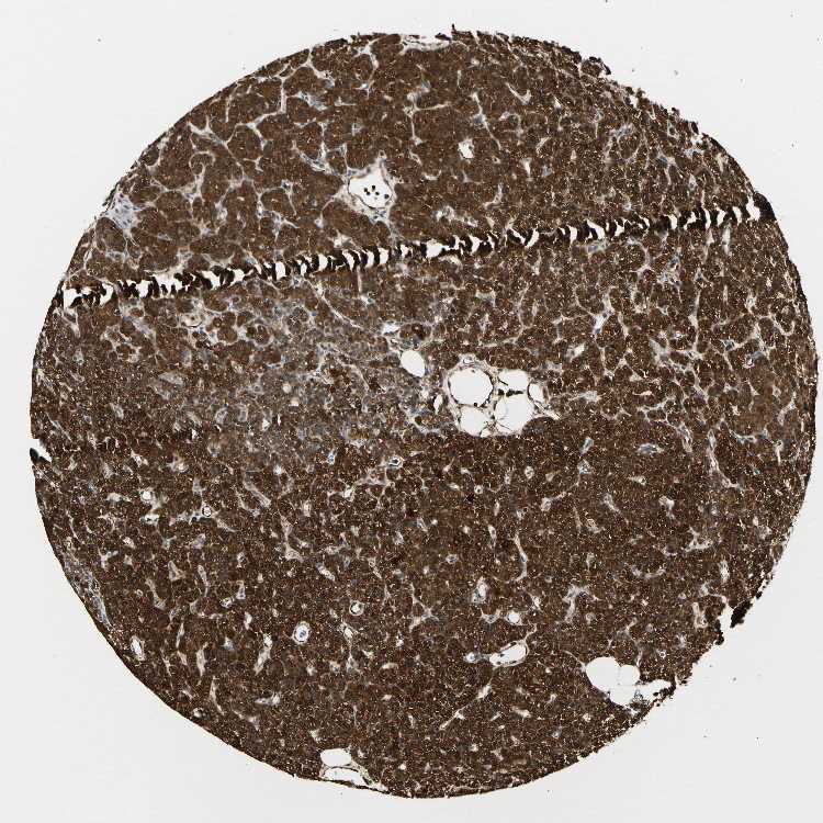 Antibody staining in the annotated cell types in the current human tissue is reported as not detected, low, medium, or high, based on conventional immunohistochemistry profiling in selected tissues. This score is based on the combination of the staining intensity and fraction of stained cells.