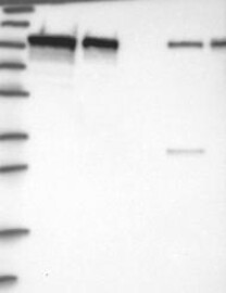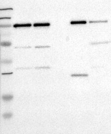 A Western blot analysis is performed on a panel of human tissues and cell lines to evaluate antibody specificity. For antibodies with unreliable result a revalidation using an over-expression lysate is performed.