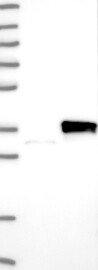 A Western blot analysis is performed on a panel of human tissues and cell lines to evaluate antibody specificity. For antibodies with unreliable result a revalidation using an over-expression lysate is performed.