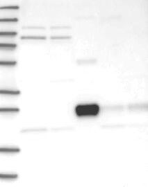 A Western blot analysis is performed on a panel of human tissues and cell lines to evaluate antibody specificity. For antibodies with unreliable result a revalidation using an over-expression lysate is performed.