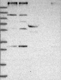A Western blot analysis is performed on a panel of human tissues and cell lines to evaluate antibody specificity. For antibodies with unreliable result a revalidation using an over-expression lysate is performed.