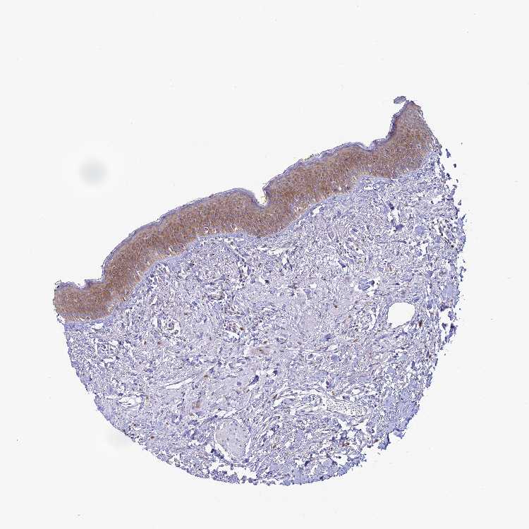 Antibody staining in the annotated cell types in the current human tissue is reported as not detected, low, medium, or high, based on conventional immunohistochemistry profiling in selected tissues. This score is based on the combination of the staining intensity and fraction of stained cells.