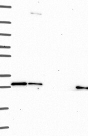 A Western blot analysis is performed on a panel of human tissues and cell lines to evaluate antibody specificity. For antibodies with unreliable result a revalidation using an over-expression lysate is performed.