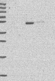 A Western blot analysis is performed on a panel of human tissues and cell lines to evaluate antibody specificity. For antibodies with unreliable result a revalidation using an over-expression lysate is performed.