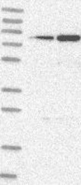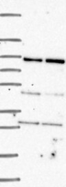 Antibody band pattern is confirmed by antibody HPA034765 & HPA034764. Analysis performed using a standard panel of samples.