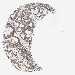 Antibody staining in the annotated cell types in the current human tissue is reported as not detected, low, medium, or high, based on conventional immunohistochemistry profiling in selected tissues. This score is based on the combination of the staining intensity and fraction of stained cells.