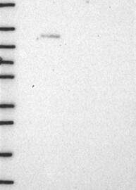 A Western blot analysis is performed on a panel of human tissues and cell lines to evaluate antibody specificity. For antibodies with unreliable result a revalidation using an over-expression lysate is performed.