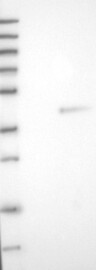 A Western blot analysis is performed on a panel of human tissues and cell lines to evaluate antibody specificity. For antibodies with unreliable result a revalidation using an over-expression lysate is performed.