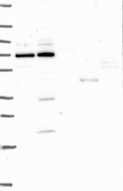A Western blot analysis is performed on a panel of human tissues and cell lines to evaluate antibody specificity. For antibodies with unreliable result a revalidation using an over-expression lysate is performed.