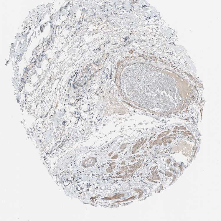 Antibody staining in the annotated cell types in the current human tissue is reported as not detected, low, medium, or high, based on conventional immunohistochemistry profiling in selected tissues. This score is based on the combination of the staining intensity and fraction of stained cells.