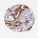 Antibody staining in the annotated cell types in the current human tissue is reported as not detected, low, medium, or high, based on conventional immunohistochemistry profiling in selected tissues. This score is based on the combination of the staining intensity and fraction of stained cells.