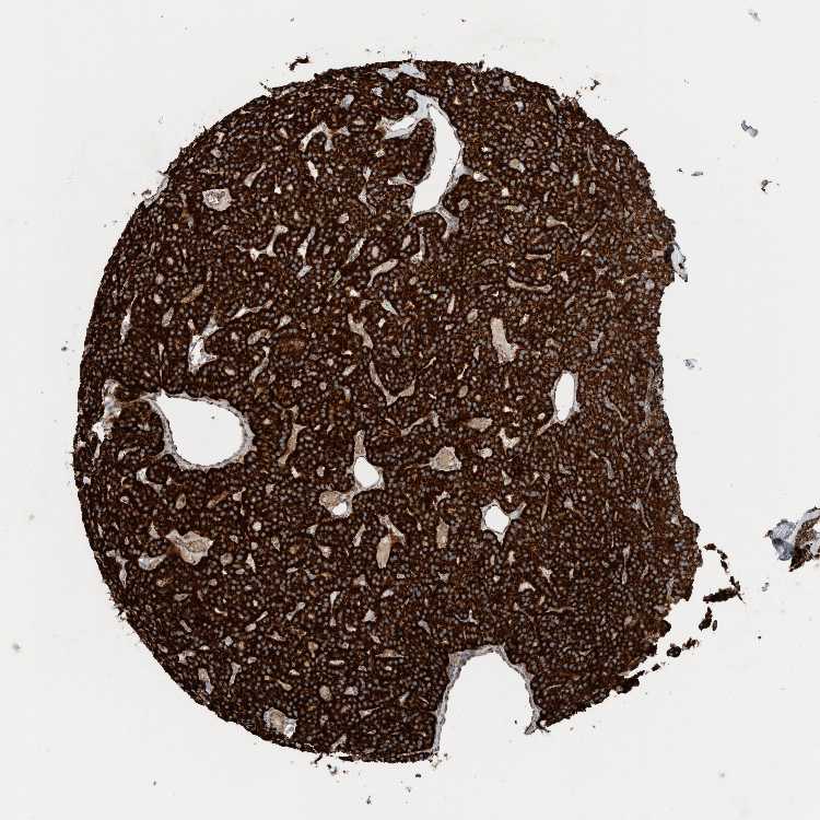 Antibody staining in the annotated cell types in the current human tissue is reported as not detected, low, medium, or high, based on conventional immunohistochemistry profiling in selected tissues. This score is based on the combination of the staining intensity and fraction of stained cells.