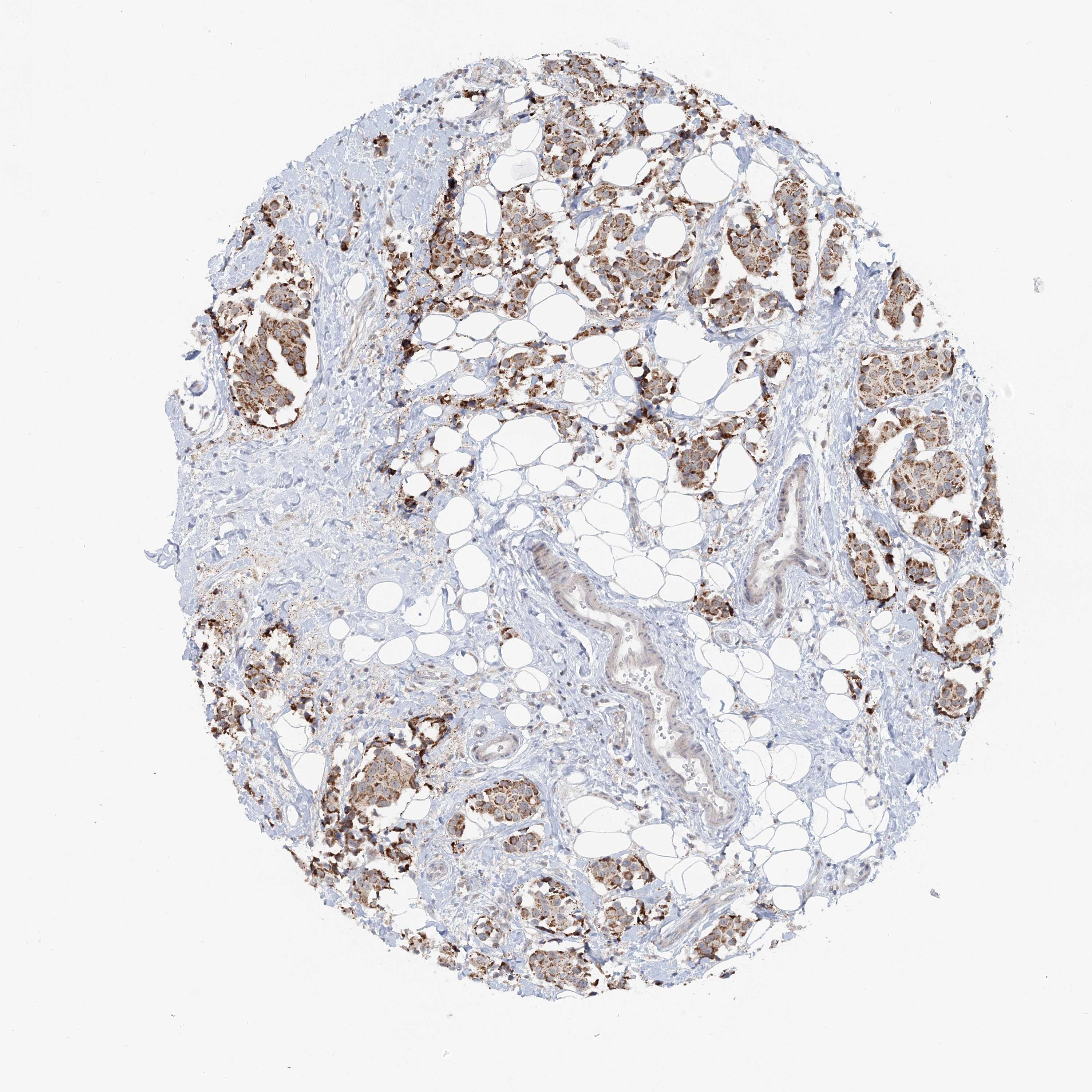Antibody staining in the annotated cell types in the current human tissue is reported as not detected, low, medium, or high, based on conventional immunohistochemistry profiling in selected tissues. This score is based on the combination of the staining intensity and fraction of stained cells.