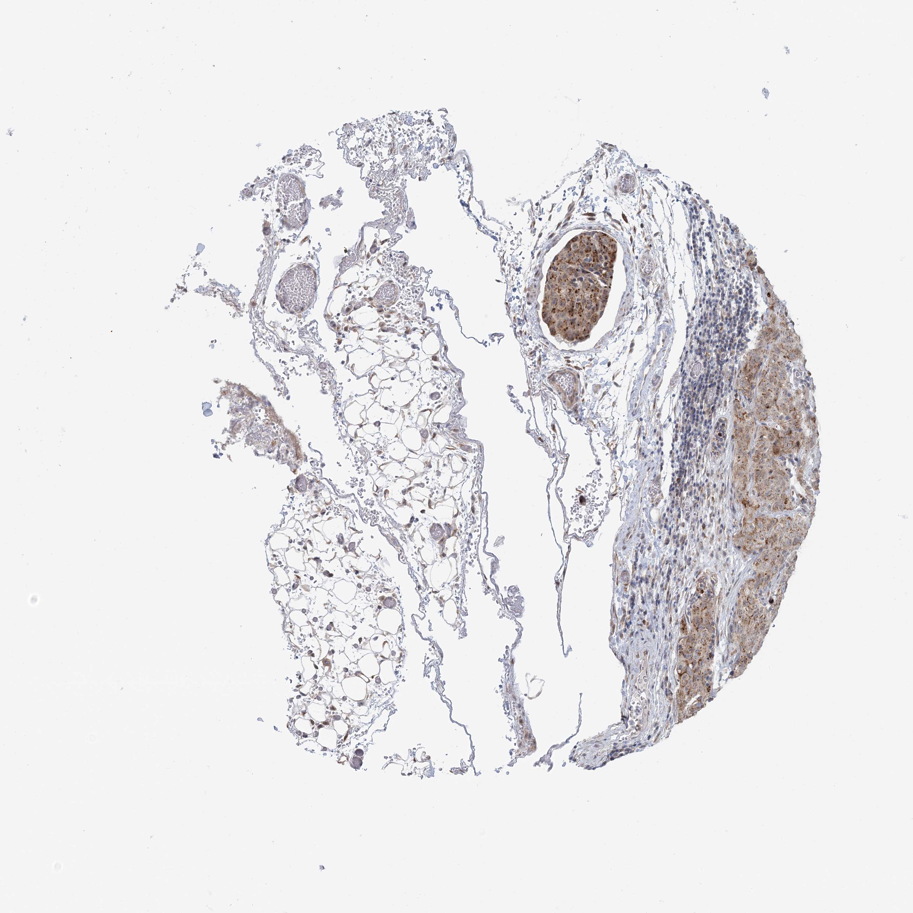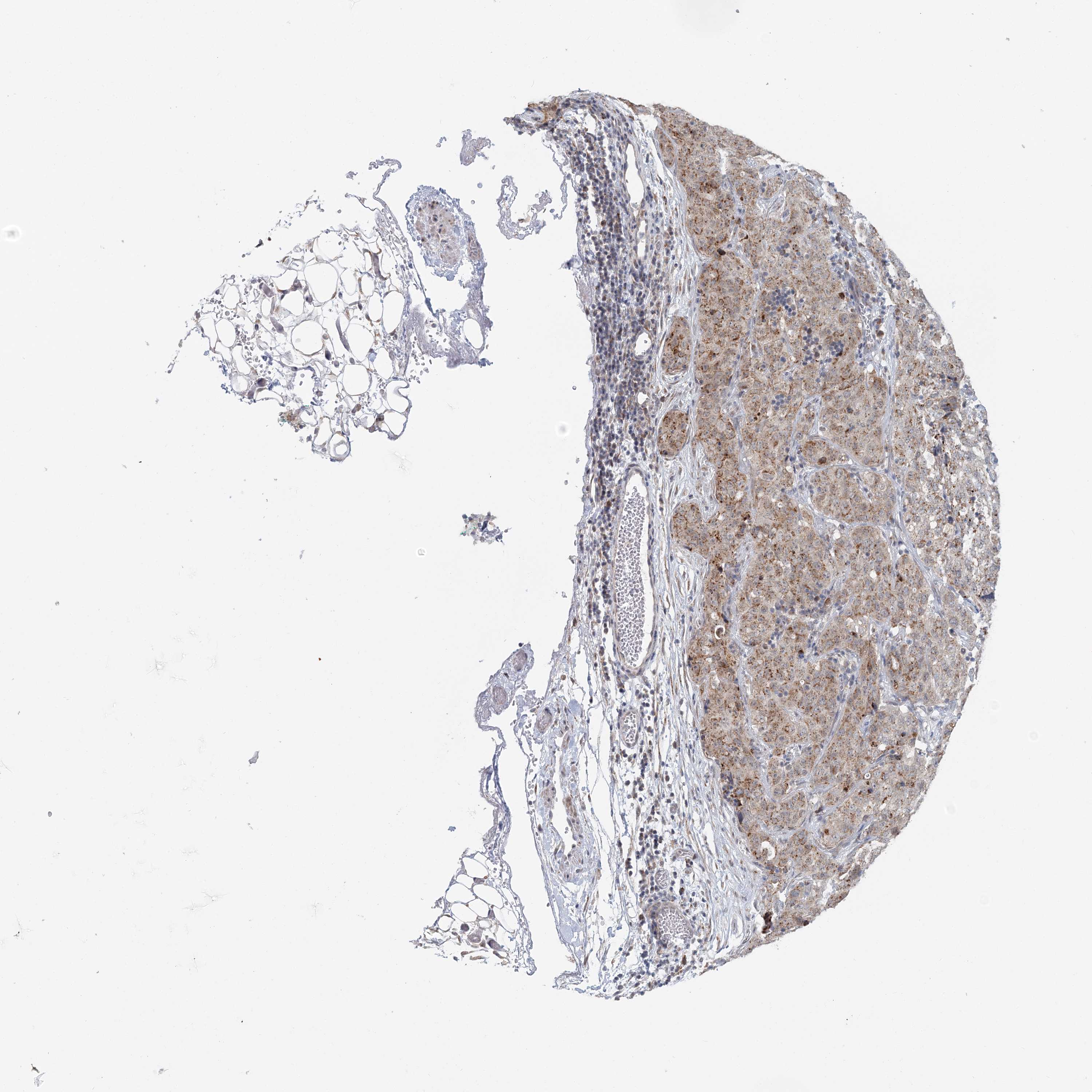 Antibody staining in the annotated cell types in the current human tissue is reported as not detected, low, medium, or high, based on conventional immunohistochemistry profiling in selected tissues. This score is based on the combination of the staining intensity and fraction of stained cells.