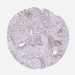 Antibody staining in the annotated cell types in the current human tissue is reported as not detected, low, medium, or high, based on conventional immunohistochemistry profiling in selected tissues. This score is based on the combination of the staining intensity and fraction of stained cells.