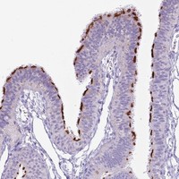 Enhanced validation results in the score Enhanced and includes two methods: Orthogonal validation and Independent antibody validation. For orthogonal validation, representative images of high and low expression are shown. For independent antibody validation, four images of each independent antibody are displayed.