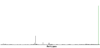The curve in blue displays the predicted antigenicity i.e. the tendency for different regions of the protein to generate an immune response, with peak regions being predicted to be more antigenic.The curve shows average values based on a sliding window approach using an in-house propensity scale. (read more).