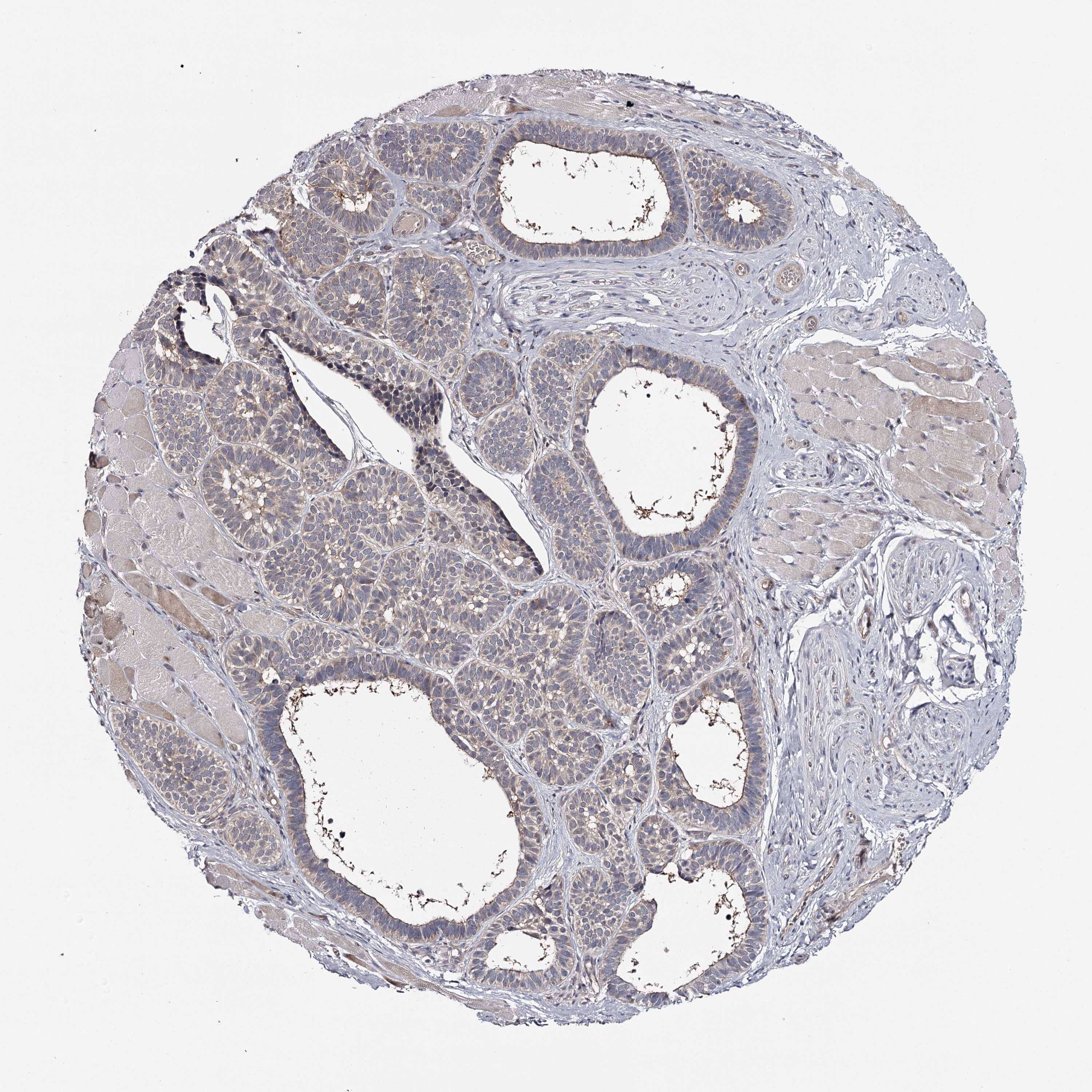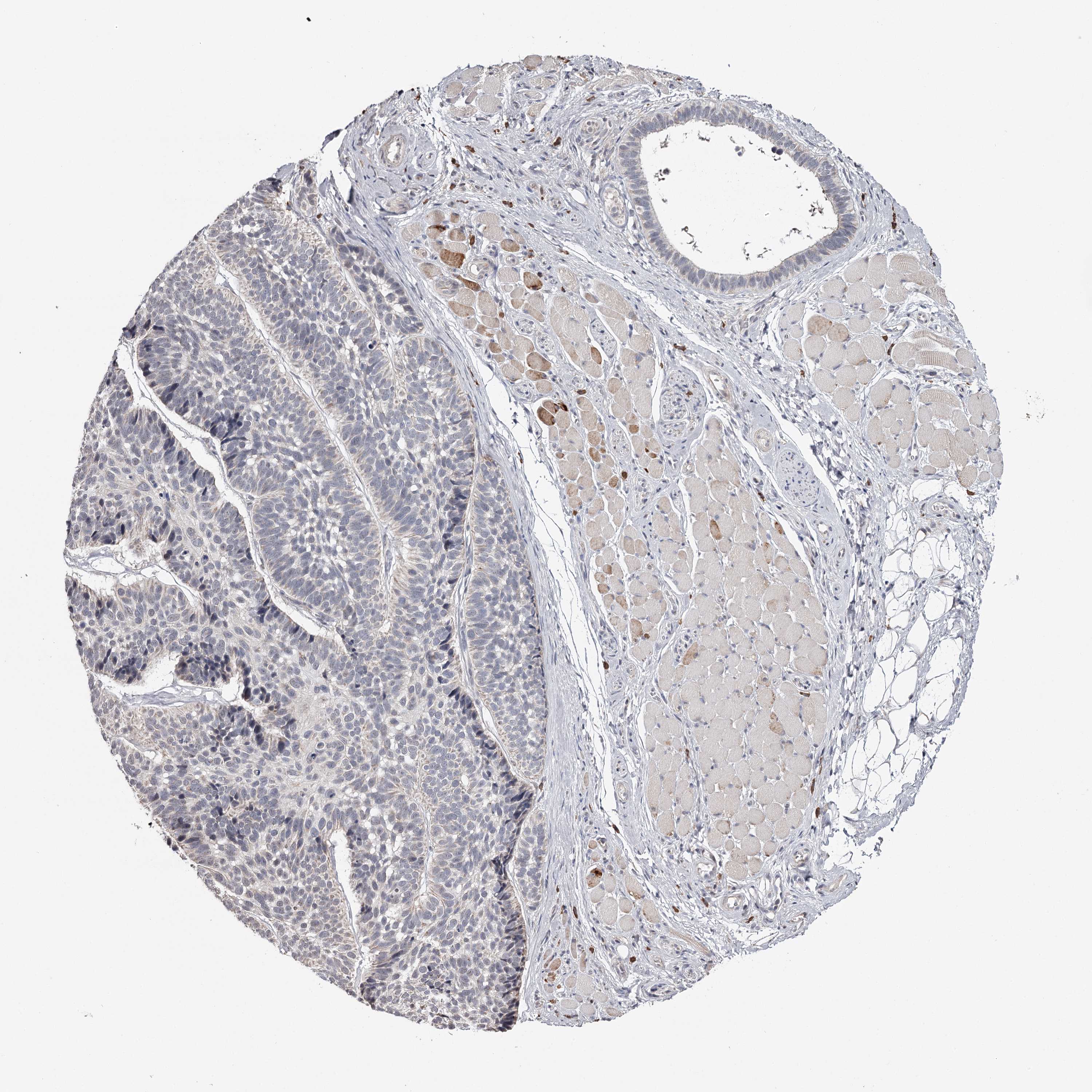 Antibody staining in the annotated cell types in the current human tissue is reported as not detected, low, medium, or high, based on conventional immunohistochemistry profiling in selected tissues. This score is based on the combination of the staining intensity and fraction of stained cells.