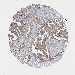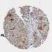 Antibody staining in the annotated cell types in the current human tissue is reported as not detected, low, medium, or high, based on conventional immunohistochemistry profiling in selected tissues. This score is based on the combination of the staining intensity and fraction of stained cells.