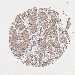 Antibody staining in the annotated cell types in the current human tissue is reported as not detected, low, medium, or high, based on conventional immunohistochemistry profiling in selected tissues. This score is based on the combination of the staining intensity and fraction of stained cells.