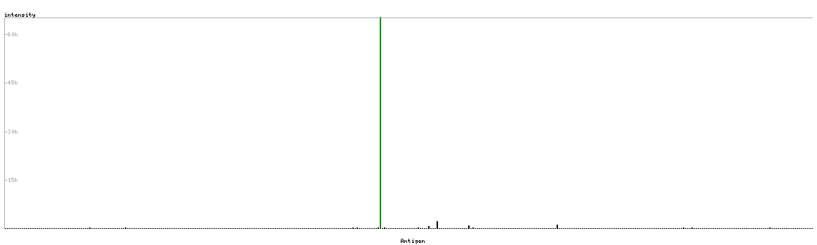 The curve in blue displays the predicted antigenicity i.e. the tendency for different regions of the protein to generate an immune response, with peak regions being predicted to be more antigenic.The curve shows average values based on a sliding window approach using an in-house propensity scale. (read more).