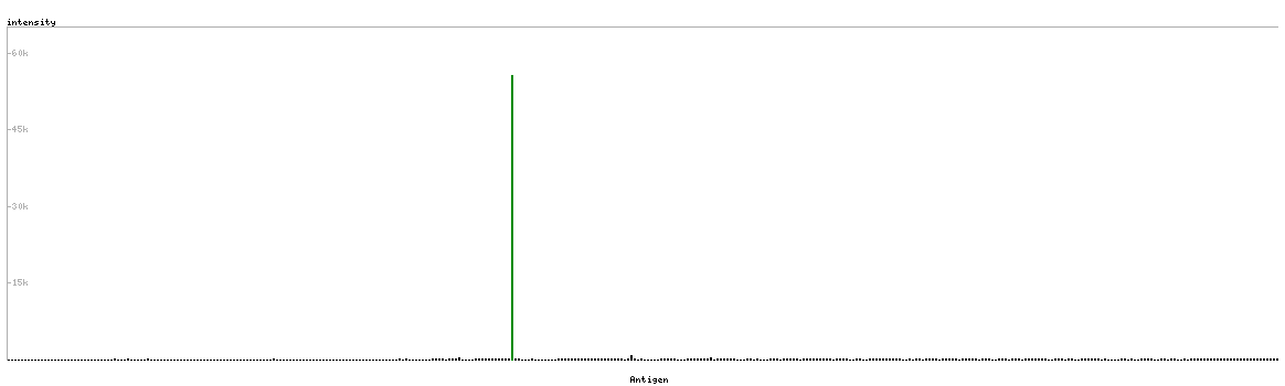 The curve in blue displays the predicted antigenicity i.e. the tendency for different regions of the protein to generate an immune response, with peak regions being predicted to be more antigenic.The curve shows average values based on a sliding window approach using an in-house propensity scale. (read more).