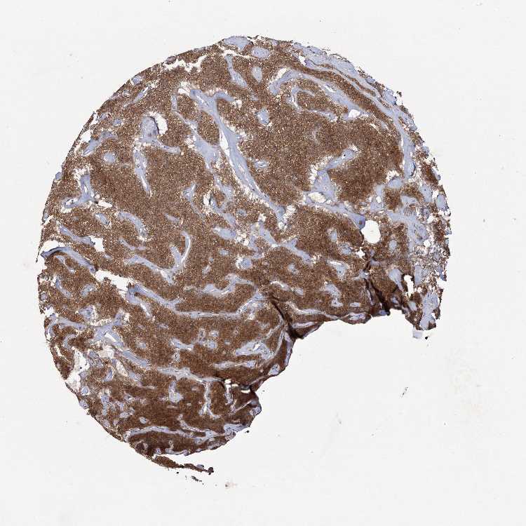 Antibody staining in the annotated cell types in the current human tissue is reported as not detected, low, medium, or high, based on conventional immunohistochemistry profiling in selected tissues. This score is based on the combination of the staining intensity and fraction of stained cells.