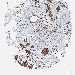 Antibody staining in the annotated cell types in the current human tissue is reported as not detected, low, medium, or high, based on conventional immunohistochemistry profiling in selected tissues. This score is based on the combination of the staining intensity and fraction of stained cells.