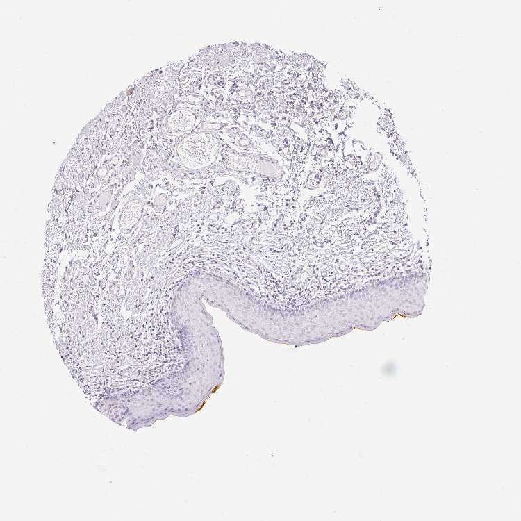 Antibody staining in the annotated cell types in the current human tissue is reported as not detected, low, medium, or high, based on conventional immunohistochemistry profiling in selected tissues. This score is based on the combination of the staining intensity and fraction of stained cells.