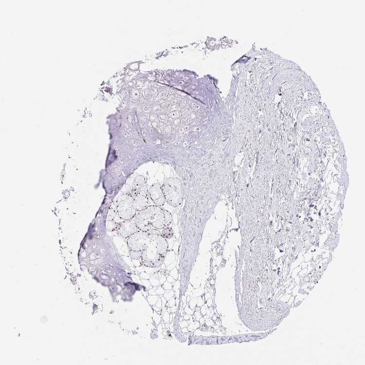 Antibody staining in the annotated cell types in the current human tissue is reported as not detected, low, medium, or high, based on conventional immunohistochemistry profiling in selected tissues. This score is based on the combination of the staining intensity and fraction of stained cells.