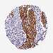 Antibody staining in the annotated cell types in the current human tissue is reported as not detected, low, medium, or high, based on conventional immunohistochemistry profiling in selected tissues. This score is based on the combination of the staining intensity and fraction of stained cells.
