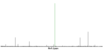The curve in blue displays the predicted antigenicity i.e. the tendency for different regions of the protein to generate an immune response, with peak regions being predicted to be more antigenic.The curve shows average values based on a sliding window approach using an in-house propensity scale. (read more).