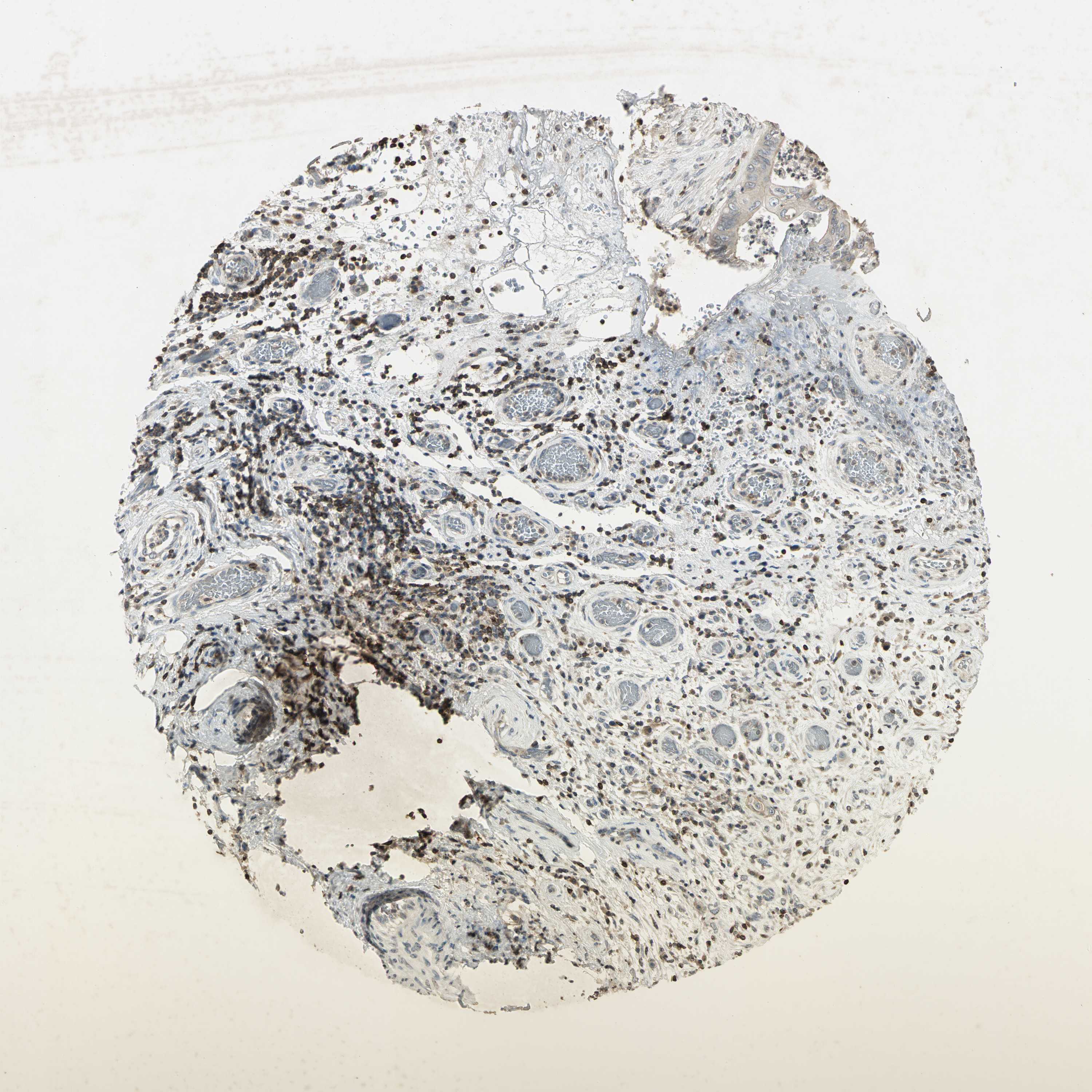 Antibody staining in the annotated cell types in the current human tissue is reported as not detected, low, medium, or high, based on conventional immunohistochemistry profiling in selected tissues. This score is based on the combination of the staining intensity and fraction of stained cells.