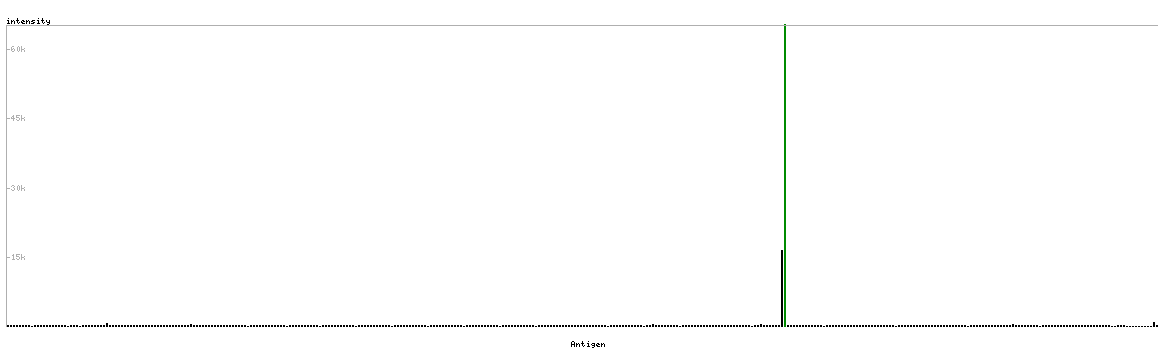The curve in blue displays the predicted antigenicity i.e. the tendency for different regions of the protein to generate an immune response, with peak regions being predicted to be more antigenic.The curve shows average values based on a sliding window approach using an in-house propensity scale. (read more).