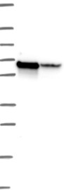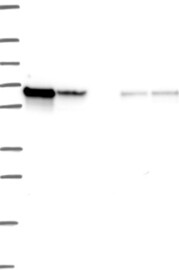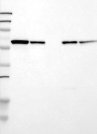A Western blot analysis is performed on a panel of human tissues and cell lines to evaluate antibody specificity. For antibodies with unreliable result a revalidation using an over-expression lysate is performed.