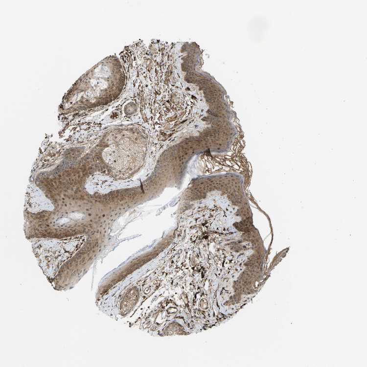 Antibody staining in the annotated cell types in the current human tissue is reported as not detected, low, medium, or high, based on conventional immunohistochemistry profiling in selected tissues. This score is based on the combination of the staining intensity and fraction of stained cells.