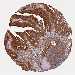 Antibody staining in the annotated cell types in the current human tissue is reported as not detected, low, medium, or high, based on conventional immunohistochemistry profiling in selected tissues. This score is based on the combination of the staining intensity and fraction of stained cells.