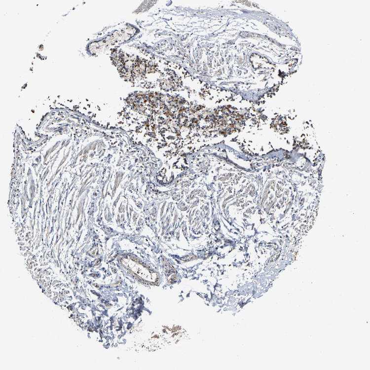 Antibody staining in the annotated cell types in the current human tissue is reported as not detected, low, medium, or high, based on conventional immunohistochemistry profiling in selected tissues. This score is based on the combination of the staining intensity and fraction of stained cells.
