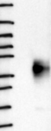 A Western blot analysis is performed on a panel of human tissues and cell lines to evaluate antibody specificity. For antibodies with unreliable result a revalidation using an over-expression lysate is performed.