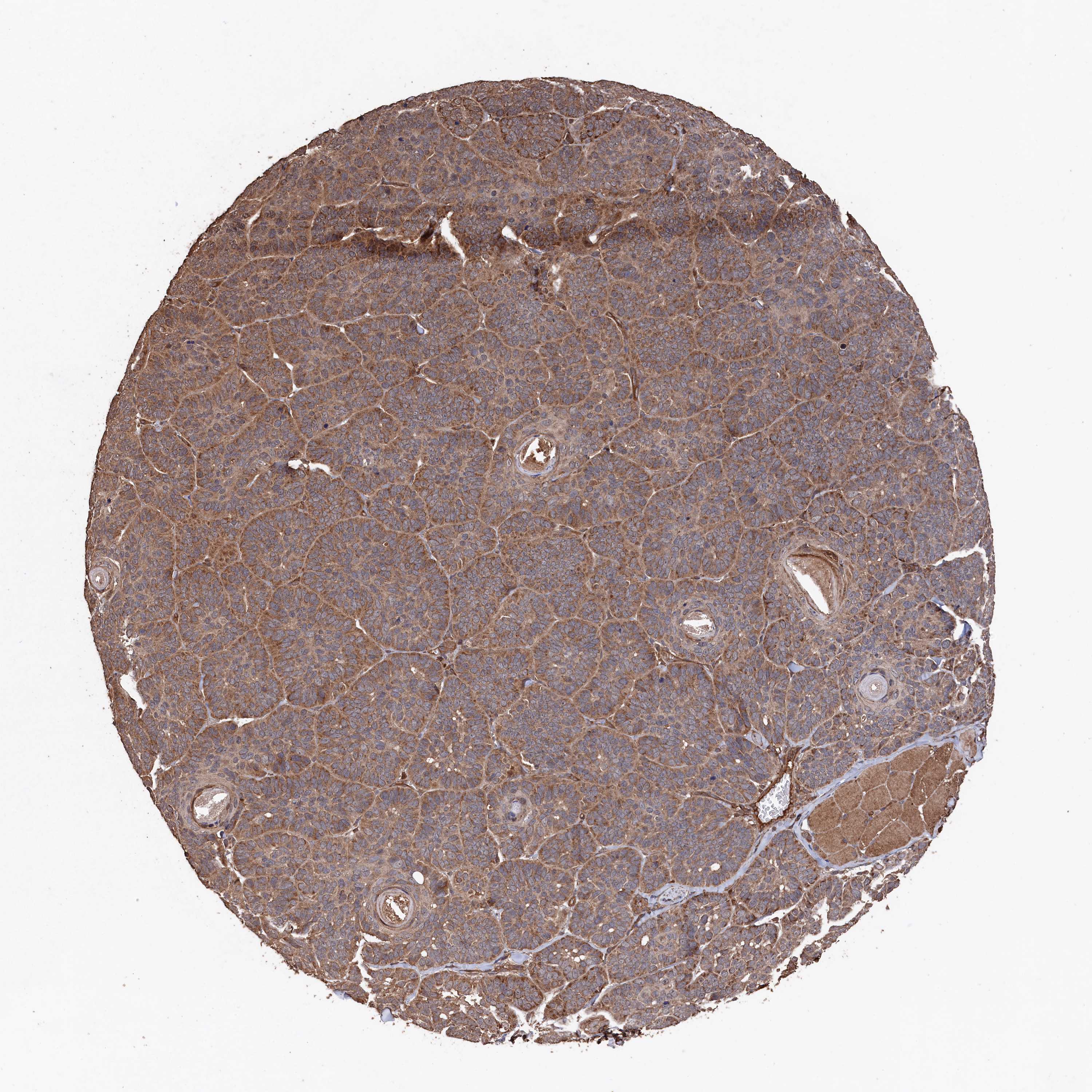 Antibody staining in the annotated cell types in the current human tissue is reported as not detected, low, medium, or high, based on conventional immunohistochemistry profiling in selected tissues. This score is based on the combination of the staining intensity and fraction of stained cells.