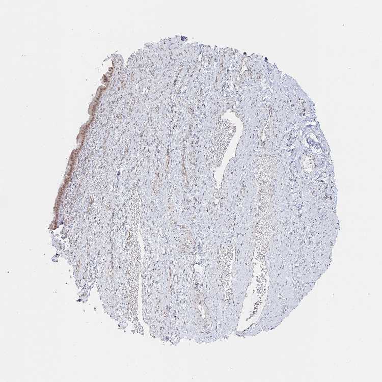Antibody staining in the annotated cell types in the current human tissue is reported as not detected, low, medium, or high, based on conventional immunohistochemistry profiling in selected tissues. This score is based on the combination of the staining intensity and fraction of stained cells.