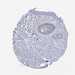 Antibody staining in the annotated cell types in the current human tissue is reported as not detected, low, medium, or high, based on conventional immunohistochemistry profiling in selected tissues. This score is based on the combination of the staining intensity and fraction of stained cells.